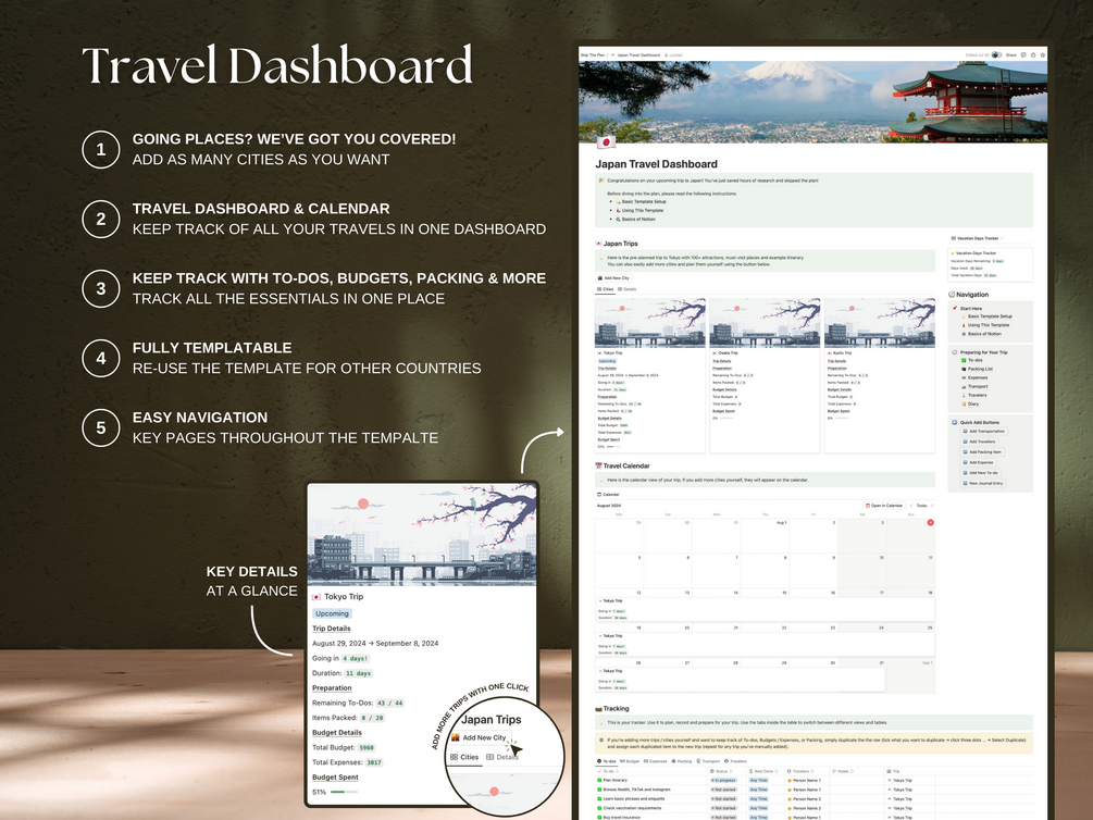 Tokyo Japan Itinerary & Travel Planner (Notion Template)