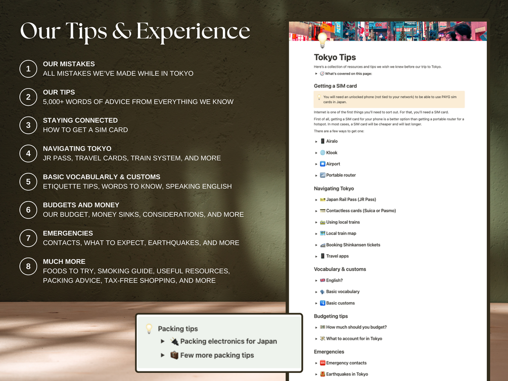 Drawing from our extensive experiences in Tokyo and across Japan, this planner is the only travel companion you'll need. We've done the heavy lifting so you can focus on enjoying your trip.